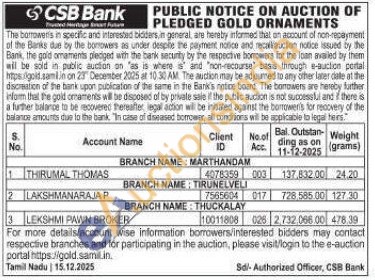 CSB Bank Gold Auctions Auction in Tirunelveli