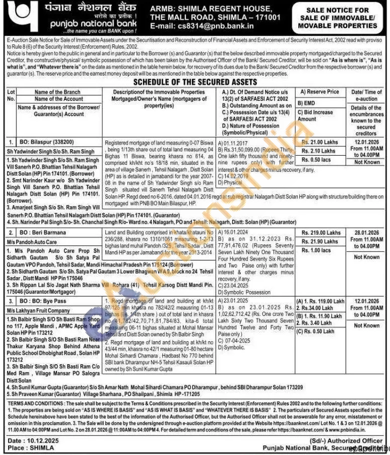 1. Regd mortgage of land and building at khikt 97/125 min khasra no 782/42/2 meausring 01-13 bighas (ie. 1/4th share) out of total land in khasra no 41,782/42,70,71,81,784/83. kita-6 total measuring 06-11 bighas situated at Mohal Mansar Tehsil and Distt Solan owned by Sh Balbir Singh