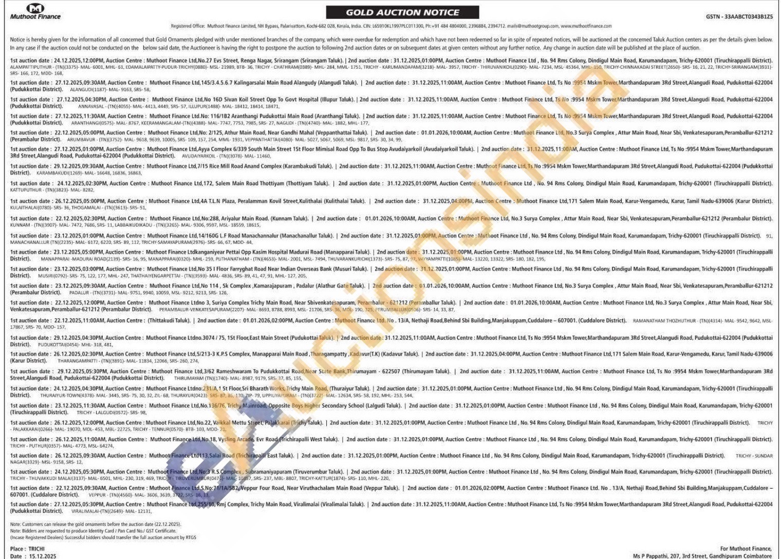 Muthoot Finance Ltd Gold Auctions Auction in Kochi