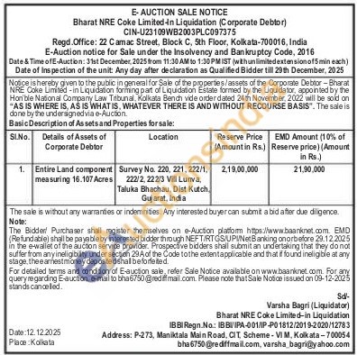 Details of Assets of Corporate Debtor : Entire Land component measuring 16.107 Acres