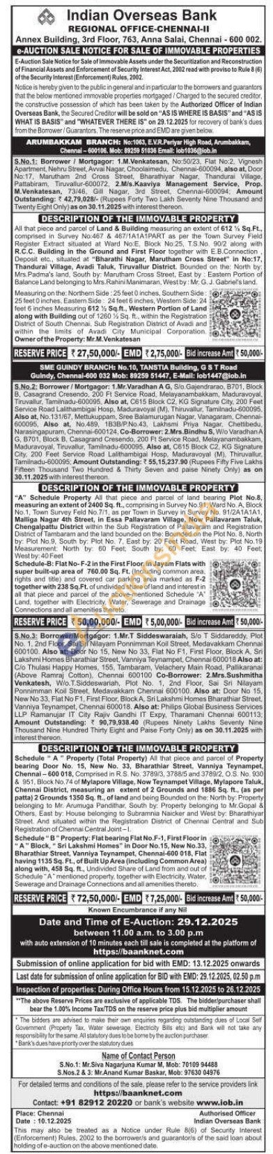 "A" Schedule Property All that piece and parcel of land bearing Plot No.8, measuring an extent of 2400 Sq. ft., comprising in Survey No.91, Ward No. A, Block No.1, Town Survey Feld No. 7/1, as per Town in Survey in Survey No. 91/2A1A1A1, Malliga Nagar 4th Street, in Essa Pallavaram Village, Now Pallavaram Taluk, Chengalpattu District within the Sub Registration of Pallavaram and Registration District of Tambaran and the land bounded on the: Bounded on the Plot No. 8, North by: Plot No.9, South by: Plot No. 7. East by: 20 Feet Road, West by: Plot No. 19 Measurement North by: 60 Feet, South by: 60 Feet: East by: 40 Feet; West by: 40 Feet