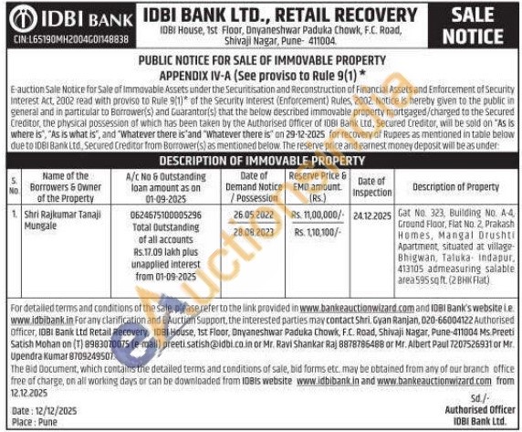 Gat No. 323, Building No. A-4 Ground Floor, Flat No. 2, Prakash Homes, Mangal Drushti Apartment, situated at village Bhigwan, Taluka Indapur, 413105 admeasuring salable area 595 sq ft. (2 BHK Flat)