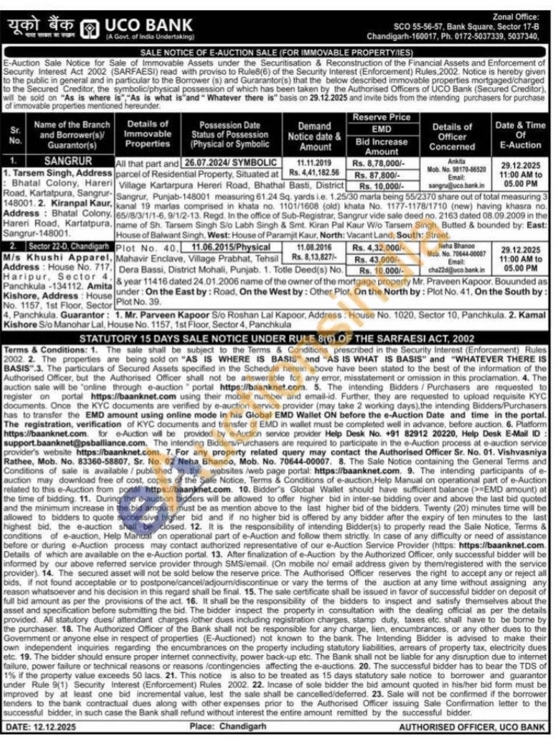 All that part and parcel of Residential Property, Situated at Village Kartarpura Hereri Road, Bhathal Basti, District Sangrur, Punjab-148001 measuring 61.24 Sq. yards i.e. 1.25/30 marla being 55/2370 share out of total measuring 3 kanal 19 marlas comprised in khata no. 1101/1608 (old) khata No. 1177-1178/1710 (new) having khasra no. 65//8/3/1/1-6, 9/1/2-13. Regd. In the office of Sub-Registrar, Sangrur vide sale deed no. 2163 dated 08.09.2009 in the name of Sh. Tarsem Singh Sio Labh Singh & Smt. Kiran Pal Kaur Wio Tarsem Singh. Butted & bounded by: East: House of Balwant Singh, West: House of Paramjit Kaur, North: Vacant Land, South: Street.