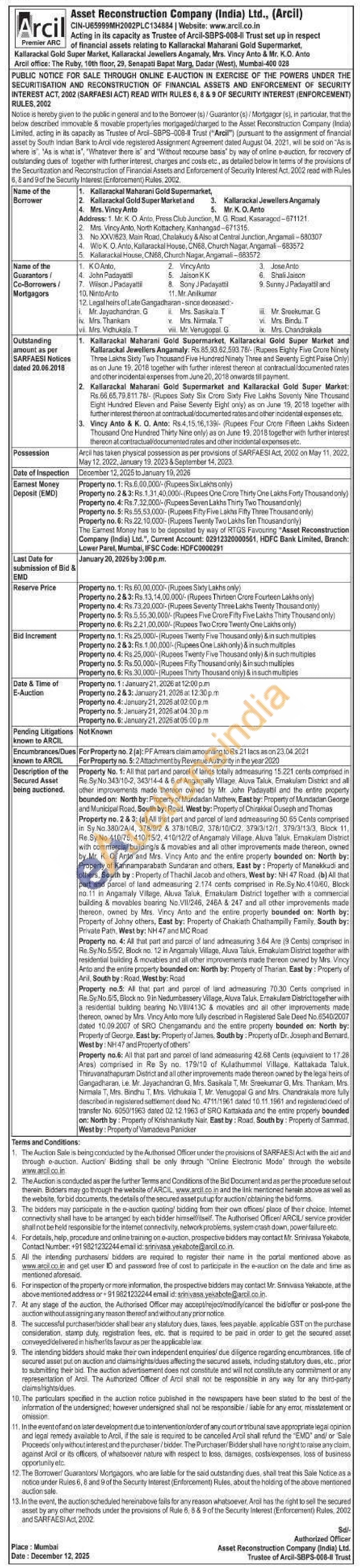 Property No. 1: All that part and parcel of lands totally admeasuring 15.221 cents comprised in Re.Sy.No.343/10-2, 343/14-4 & 6 of Angamally Village, Aluva Taluk, Emakulam District and all other improvements made thereon owned by Mr. John Padayattil and the entire property bounded on: North by: Property of Mundadan Mathew, East by: Property of Mundadan George and Municipal Road, South by: Road, West by: Property of Chirakkal Ouseph and Thomas
