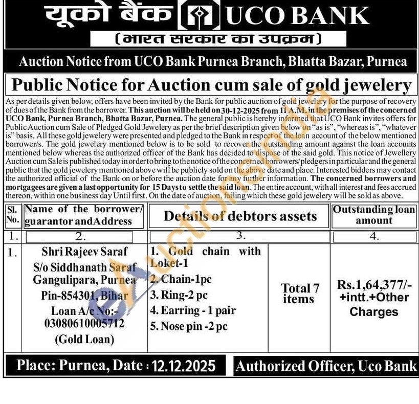UCO Bank Gold Auctions Auction in Purnia