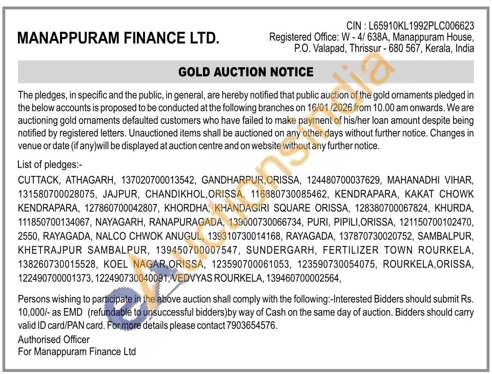 Manappuram Finance Ltd Gold Auctions Auction in Thrissur