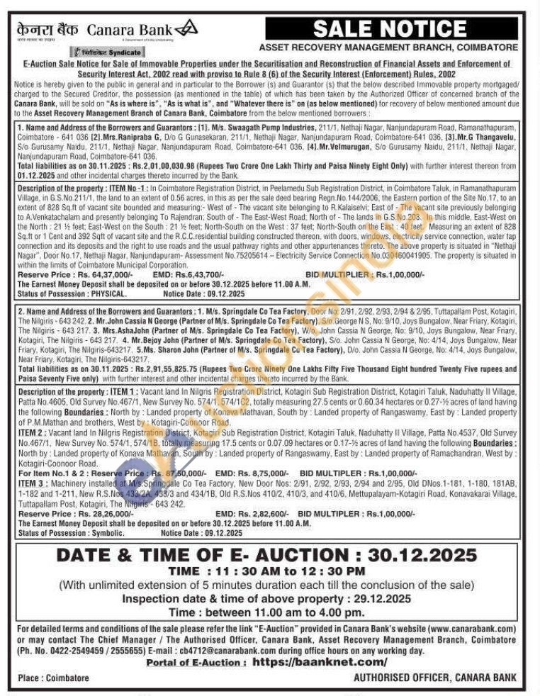 Machinery installed at M/s.Springdale Co Tea Factory, New Door Nos: 2/91, 2/92, 2/93, 2/94 and 2/95, Old DNos. 1-181, 1-180, 181AB 1-182 and 1-211, New R.S.Nos 433/2A, 433/3 and 434/18, Old R.S.Nos 410/2, 410/3, and 410/6, Mettupalayam-Kotagiri Road, Konavakarai Village, Tuttapaliam Post, Kotagiri, The Nilgiris-643 242