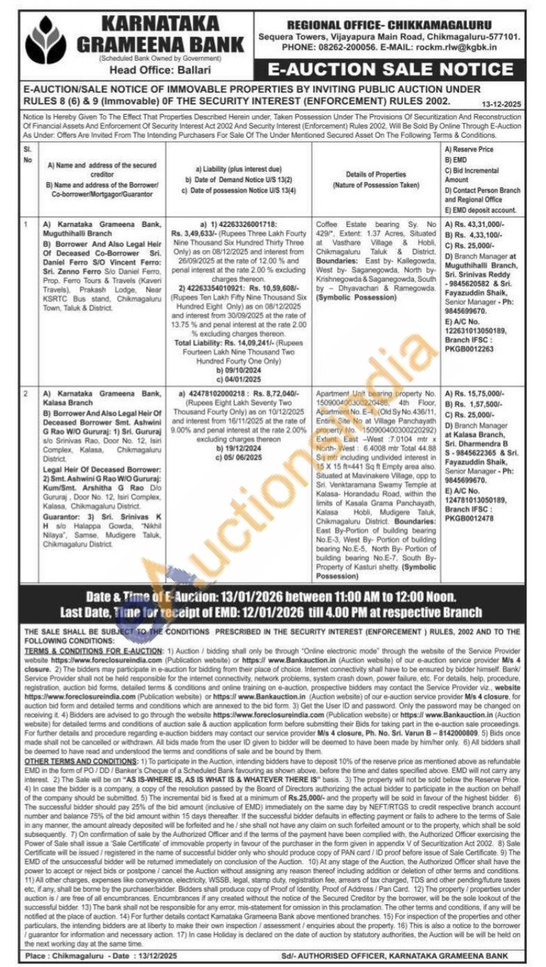 Apartment Unit bearing earing property. No No 150800400300220406 4th Floor, Apartment No. 5-4 (Old By No 430/11, Entire Site No at Vilage Panchayath property No. 150900400300220292) Extent East-West 70104 North-West 4000 mtr Total 44.98 iq mer including undivided antaresti 15 X 15 1441 Bft Empty arse aiso Village opp to Situated at Mevinäkare Village Sn. Verktacamana Swamy Temple at Kalasa- Horandadu Road within the limbs of Kasale Grama Panchayath, Hobil Mudigere Taluk, Kalasa Chikmagaluni District Boundaries: East By-Portion of building bearing No E-3 West By Portion of building bearing No - North By Portion of bulding bearing No. E-7, South By Property of K y of Kasturi shetty (Symbolic Possession)