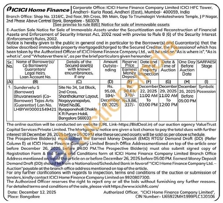 Site No 34, 1st Block, 2nd Cross, Shanthakumar Layout, Nagayyanapalya, Ward No.86, Byappanahalli Dhakle KR Puram Hobli, Bangalore 560033