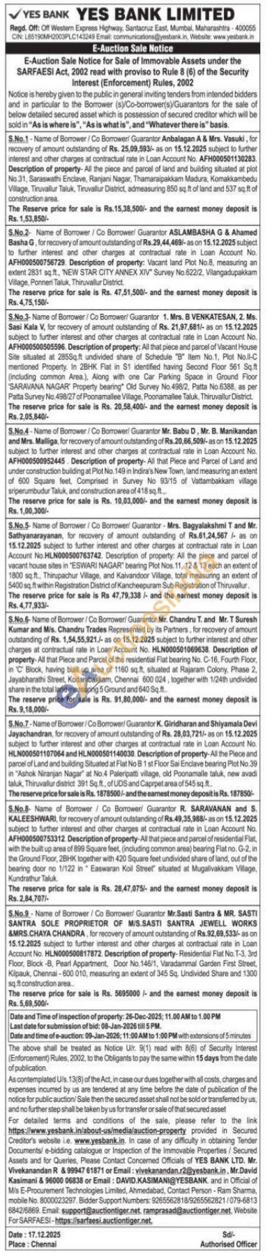 Description of property: All that piece and parcel of Vacant House Site situated at 285Sq.ft undivided share of Schedule "B" Item No.1, Plot No.ll-C mentioned Property. In 2BHK Flat in S1 identified having Second Floor 561 Sq.ft (including common Area.), Along with one Car Parking Space in Ground Floor SARAVANA NAGAR' Property bearing Old Survey No.498/2, Patta No.6388, as per Patta Survey No.498/27 of Poonamallee Village, Poonamallee Taluk, Thiruvallur District