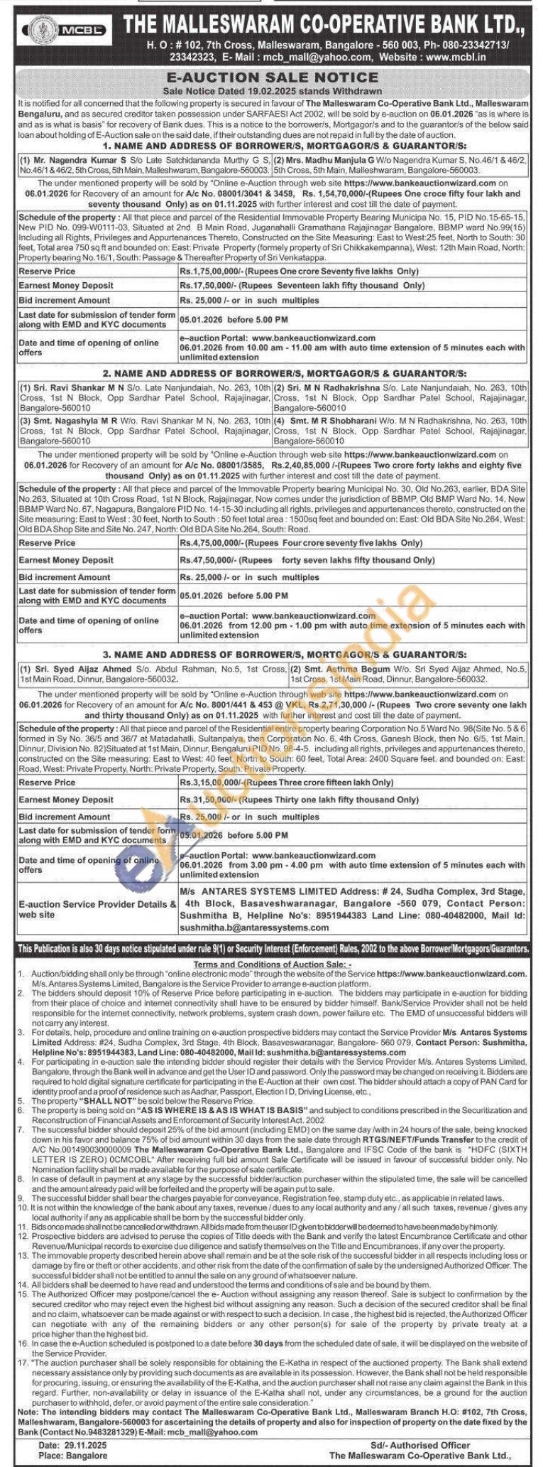 2) All that piece and parcel of the Immovable Property bearing Municipal No. 30. Old No.263, earlier, BDA Site No.263, Situated at 10th Cross Road, 1st N Block, Rajajinagar, Now comes under the jurisdiction of BBMP, Old BMP Ward No. 14. New BBMP Ward No. 67, Nagapura, Bangalore PID No. 14-15-30 including all rights, privileges and appurtenances thereto, constructed on the Site measuring: East to West: 30 feet, North to South: 50 feet total area: 1500sq feet and bounded on: East: Old BDA Site No.264, West: Old BDA Shop Site and Site No. 247, North: Old BDA Site No.264, South: Road.
