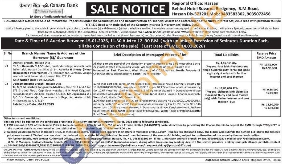 Regional Office Hassan Phone No : 9483513302 / Manager Arehalli Branch Phone No : 8050891328
