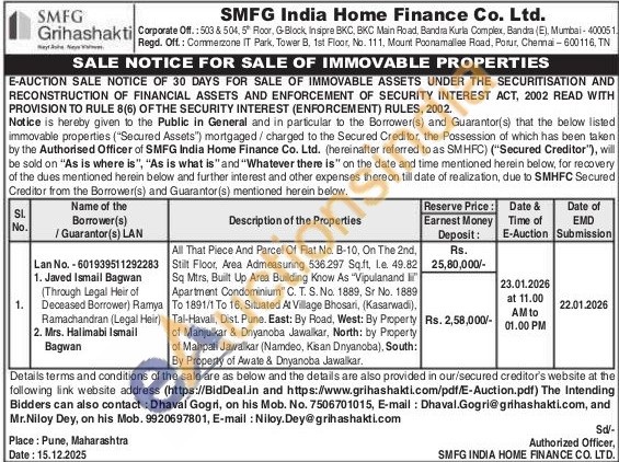 All That Piece And Parcel Of Flat No. B-10, On The 2nd, Stilt Floor, Area Admeasuring 536.297 Sq.ft. Le. 49.82 Sq Mtrs, Built Up Area Building Know As "Vipulanand li" Apartment Condominium" C. T. S. No. 1889, Sr No. 1889 To 1891/1 To 16, Situated At Village Bhosari, (Kasarwadi), Tal-Havalli, Dist. Pune. East: By Road, West: By Property of Manjulkar & Dnyanoba Jawalkar, North: by Property of Mahpati Jawalkar (Namdeo, Kisan Dnyanoba), South: By Property of Awate & Dnyanoba Jawalkar