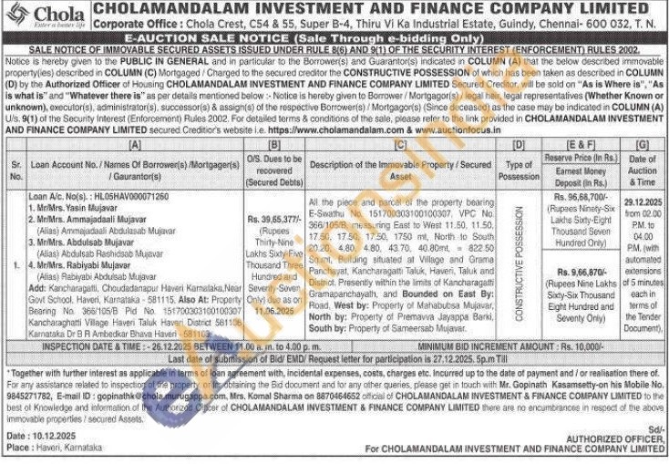 All the piece and parcel of the property bearing E-Swathu No. 151700303100100307, VPC No 366/105/B measuring East to West 11.50, 11.50, 17.50, 17.50, 17.50, 1750 mt. North to South 20.20, 4.80, 480, 43.70, 40.80ml 822 50 Sq.mt, Building situated at Village and Grama Panchayat, Kancharagatti Taluk, Haveri, Taluk and District. Presently within the limits of Kancharagatti Gramapanchayath, and Bounded on East By: Road. West by: Property of Mahabubsa Mujavar, North by: Property of Premavva Jayappa Barki, South by: Property of Sameersab Mujavar