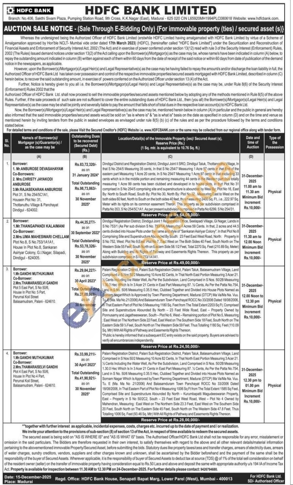 Palani Registration District, Palani Sub Registration District, Palani Taluk, Balasamudram Village, Land Comprised in S Nos 50/2 Measuring 10 Acre 82 Cents, In That North East Portion Measuring 3 Acer 21. Cents Including the Water Well, As Per the Subdivision, Land Comprised in S Nos. 50/28 Measuring 1.30.0 Hec Which Is In 3 Acer 21 Cents in East Part Measuring 87. % Cents, As Per the Patta No.754, Land in S No. 50/6 Measuring 0.35.5 Hec, Clubbed Together and Divided into House Plots Named as Sonam Nagar Which Is Approved by Town Planning Department, Madurai (DTCP) Ma Va/Ma Na. Vuu. Tu. E (Ma. Ma No 21/2006) And Balasamduram Town Panchayat ROCC No 33/2006 Dated 18/08/2006, In That Eastern Part of Plot No 4 Measuring 1006 Sq Ft from The Total Extent 1585 Sq Feet. Comprised Site and Superstructure Abounded By North Kurumbapatti Magudeeswaran Property, East-Property in S No 50/2C2, South-23 Feet East West Road, West-Plot No 4 Owned by Mahendran, Measuring: East West on The Northern Side 23.3 Feet, East West on The Southern Side 20 Feet. South North on The Eastem Side 45 Feet, South North on The Westem Side 47.8 Feet. Thus Totalling 1006 Sq. Feet (93.46 Sq. Mtr) With All Rights of Pathway and Easements Rights Thereon.