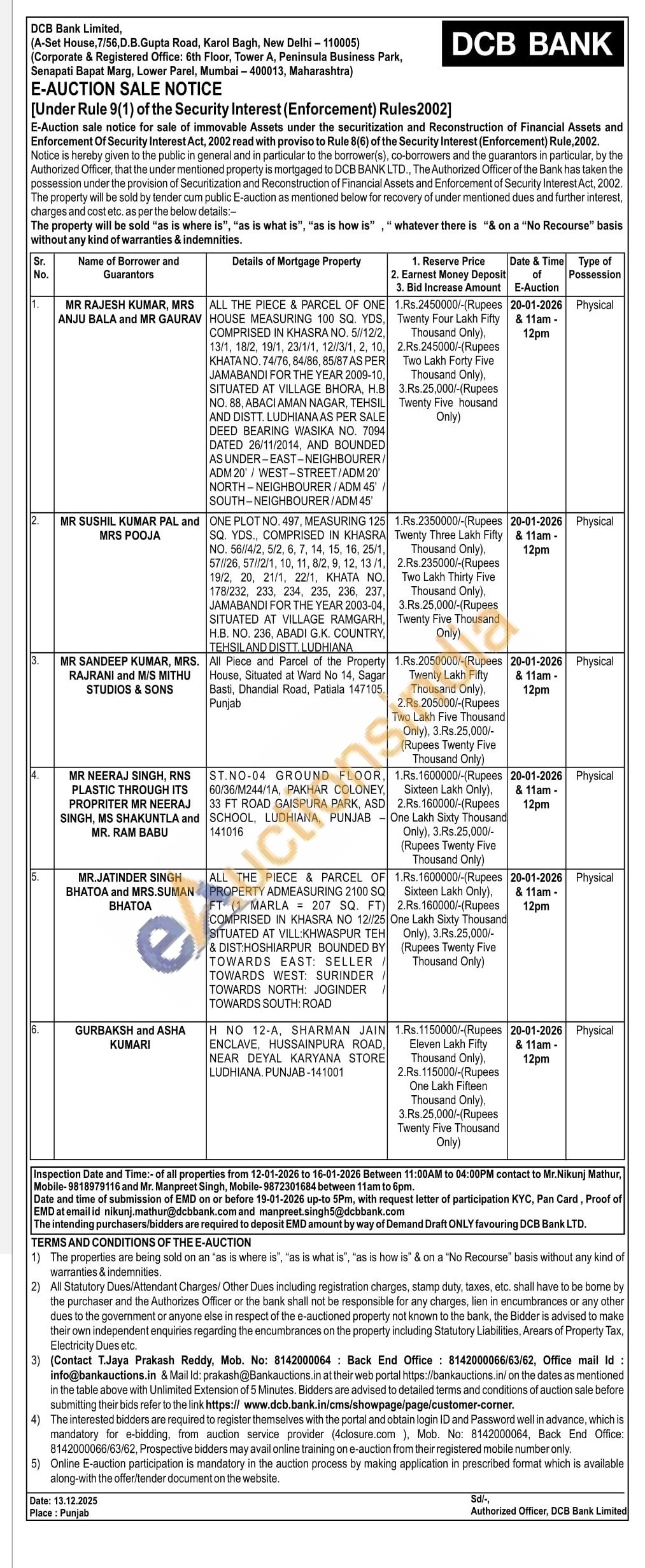 ALL THE PIECE & PARCEL OF ONE HOUSE MEASURING 100 SQ. YDS, COMPRISED IN KHASRA NO. 5//12/2, 13/1, 18/2, 19/1, 23/1/1, 12//3/1, 2, 10, KHATANO. 74/76, 84/86, 85/87 AS PER JAMABANDI FOR THE YEAR 2009-10, SITUATED AT VILLAGE BHORA, H.B NO. 88, ABACI AMAN NAGAR, TEHSIL AND DISTT, LUDHIANA AS PER SALE DEED BEARING WASIKA NO. 7094 DATED 26/11/2014, AND BOUNDED AS UNDER-EAST-NEIGHBOURER/ADM 20/WEST-STREET/ADM 20 NORTH-NEIGHBOURER/ADM 45/SOUTH-NEIGHBOURER/ADM 45