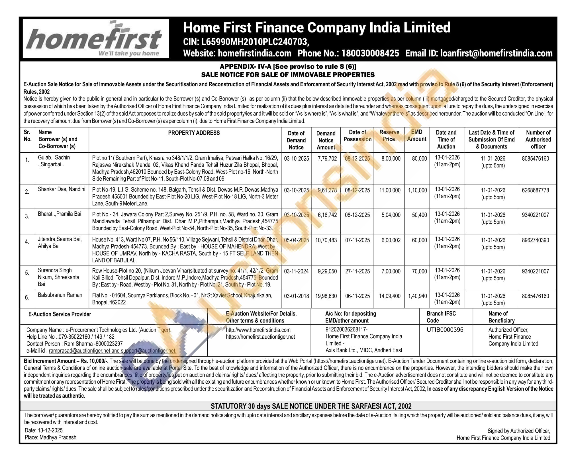 House No. 413, Ward No 07, P.H. No 56/110, Village Sejwani, Tehsil & District Dhar, Dhar, Madhya Pradesh-454773. Bounded By: East by - HOUSE OF MAHENDRA, West by -HOUSE OF UMRAV, North by - KACHA RASTA, South by - 15 FT SELF LAND THEN LAND OF BABULAL