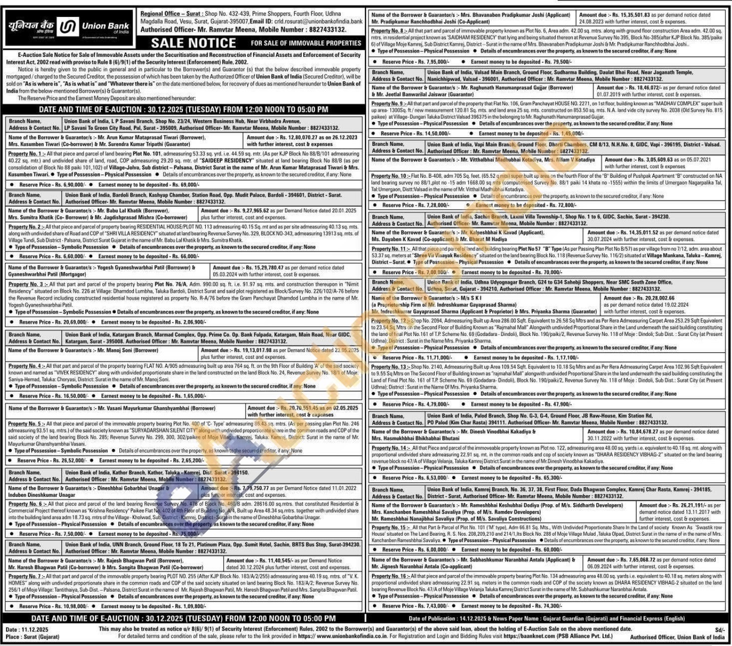 Authorised Officer: Mr. Ramvtar Meena, Mobile Number: 8827433132