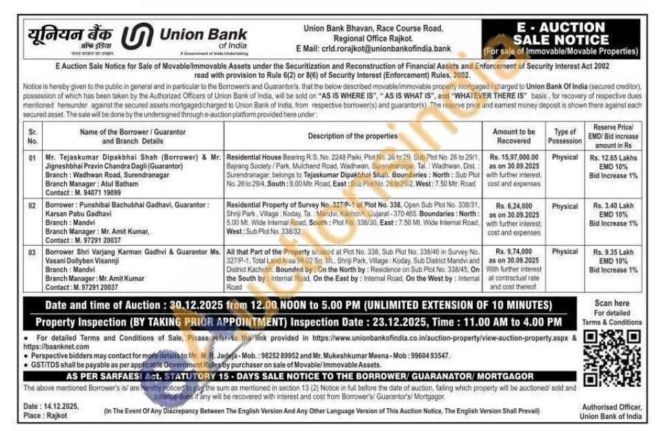 Residential Property of Survey No. 327/P-1 of Plot No. 338, Open Sub Plot No. 338/31, Shri Park, Village: Koday, Ta. Mandvi, Kachchh, Gujarat-370-465. Boundaries: North: 5.00 Mt. Wide Internal Road, South: Plot No. 338/30, East: 7.50 Mt. Wide Internal Road, West: Sub Plot No. 338/32