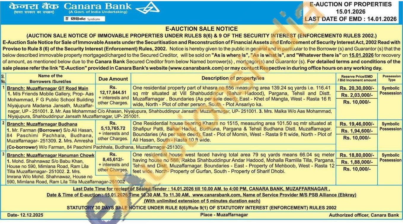 One residential property part of khasra no 656 measuring area 139.24 sq yards i.e. 116.41 sq mtr situated at Vill Shahbuddinpur (Bahar Hadood), Pargana, Tehsil and Distt. Muzaffarnagar. Boundaries (As per sale deed): East - Khet of Mangta, West - Rasta 16 ft wide, North - Plot of other person, South - Plot Ansariyo ka