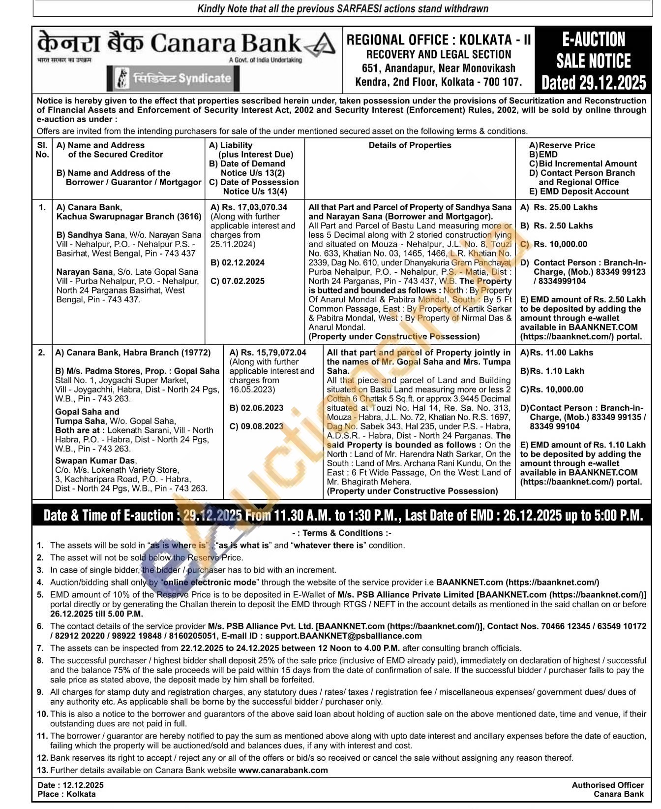 All Part and Parcel of Bastu Land measuring more or less 5 Decimal along with 2 storied construction lying and situated on Mouza Nehalpur, J.L. No. 8, Touzi No. 633, Khatian No. 03, 1465, 1466, L.R. Khatian No. 2339, Dag No. 610, under Dhanyakuria Gram Panchayat, Purba Nehalpur, P.O. Nehalpur, P.S. Matia, Dist: North 24 Parganas, Pin-743 437, W.B. The Property is butted and bounded as follows: North: By Property Of Anarul Mondal & Pabitra Mondal, South By 5 Ft Common Passage, East: By Property of Kartik Sarkar & Pabitra Mondal, West: By Property of Nirmal Das & Anarul Mondal.