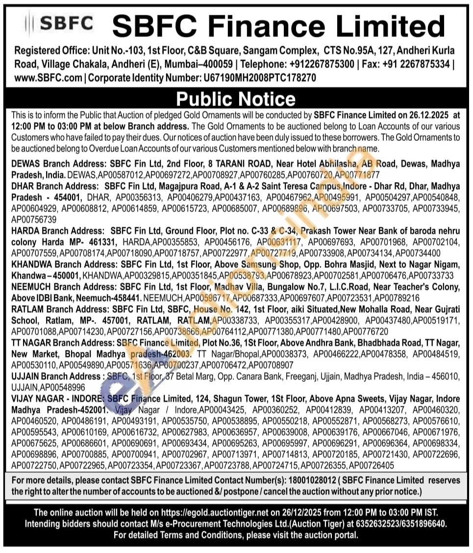 SBFC Finance Ltd Gold Auctions Auction in Dewas