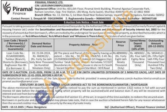 All The piece and Parcel of the Property having an extent Site No 50, Kh No. 3968/50, E-kh No. 152500904100905027, Vokkodi (V) Heggere (Gel, Tumkur Taluk Tumkur District Karnataka 572107 Boundaries As North House in site no 51 South Vacant Site East: Vacant Site West: 3 Site West: 30 ft Road