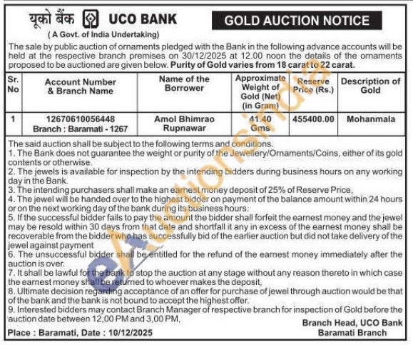UCO Bank Gold Auctions Auction in Pune