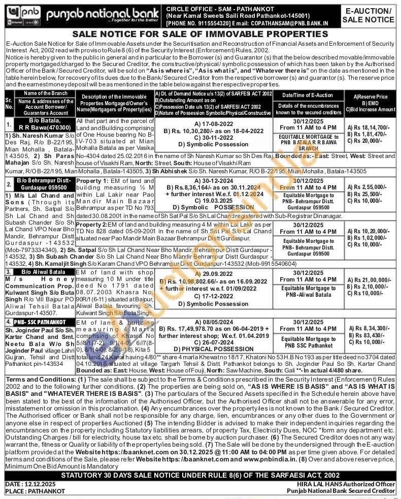 EM of land & building . measuring 4 Marla . comprising of Khasra No Sh 5/8/1 (7-2), 9/1(4-0), 6/7(8-0), 8/1(4-0), 8/2(0-18), Kita 5 total land 24 Kanal having 4/80** share 4 marla Khewatno 18/1 7, Khatoni No 53H.B No 193 as per title deed no 3704 dated 04.10.2016 situated at village Targarh Tehsil & Distt Pathankot belongs to Sh. Joginder Paul So Sh. Kartar Chand