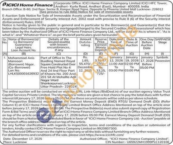 Part of Office In The Buidling Named Royal Square Constructed Over Free Hold Plot No 4 And 24 lind Floor Part of Khasra No. 200 And 201 Sit At Mohallia Adil Nagar Ward Shankarpurwa Lucknow Uttar Pradesh-226024