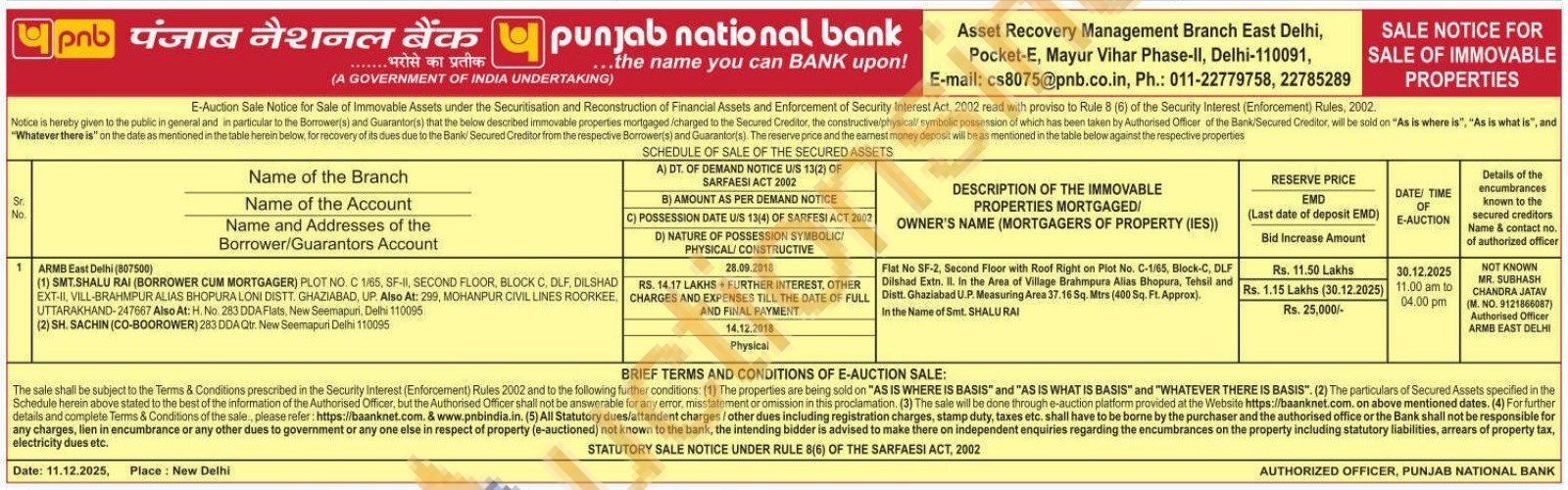 Flat No SF-2, Second Floor with Roof Right on Plot No. C-1/65, Block-C, DLF Dilshad Extn. II. In the Area of Village Brahmpura Alias Bhopura, Tehsil and Distt. Ghaziabad U.P. Measuring Area 37.16 Sq. Mtrs (400 Sq. Ft. Approx) In the Name of Smt. SHALU