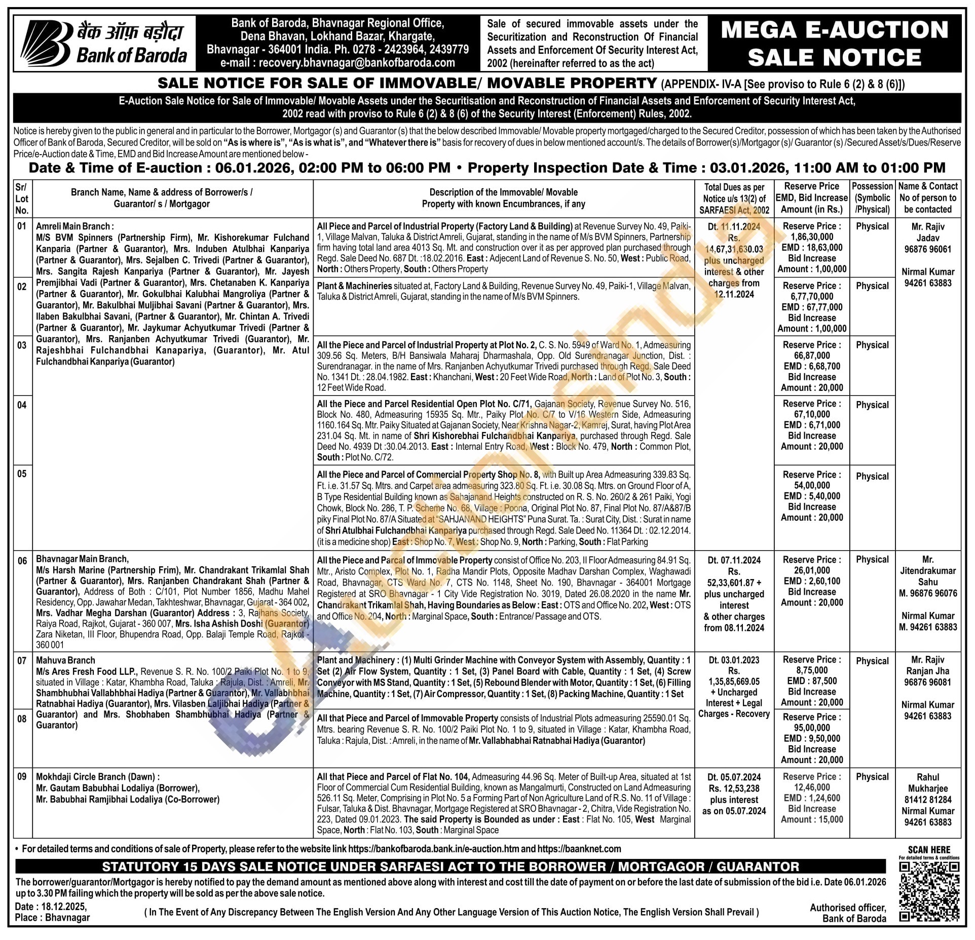 All Piece and Parcel of Industrial Property (Factory Land & Building) at Revenue Survey No. 49, Paiki-1, Village Malvan, Taluka & District Amreli, Gujarat, standing in the name of M/s BVM Spinners, Partnership firm having total land area 4013 Sq. Mt. and construction over it as per approved plan purchased through Regd. Sale Deed No. 687 Dt. : 18.02.2016. East: Adjecent Land of Revenue S. No. 50, West: Public Road, North: Others Property, South: Others Property