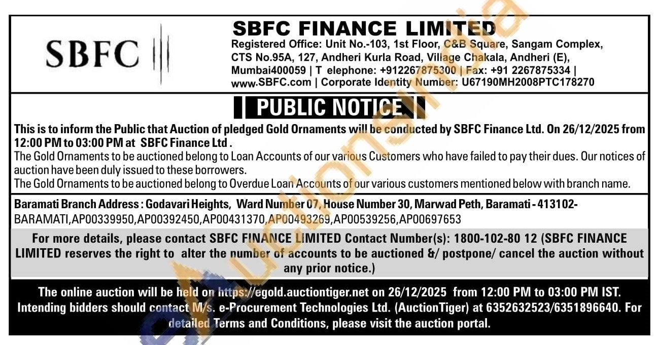 SBFC Finance Ltd Gold Auctions Auction in Lucknow