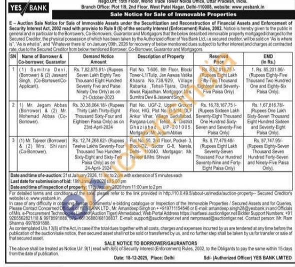 Flat No. T-606, 6th Floor, Block Tower-L1/Tulip. Jan Aawas Vatika Khasra No.738/929, Village Rabarka Tehsil-Tijara, Distt Alwar, Rajasthan. Mortgagor: Mrs. Sumitra Dew & Jaswant Singh