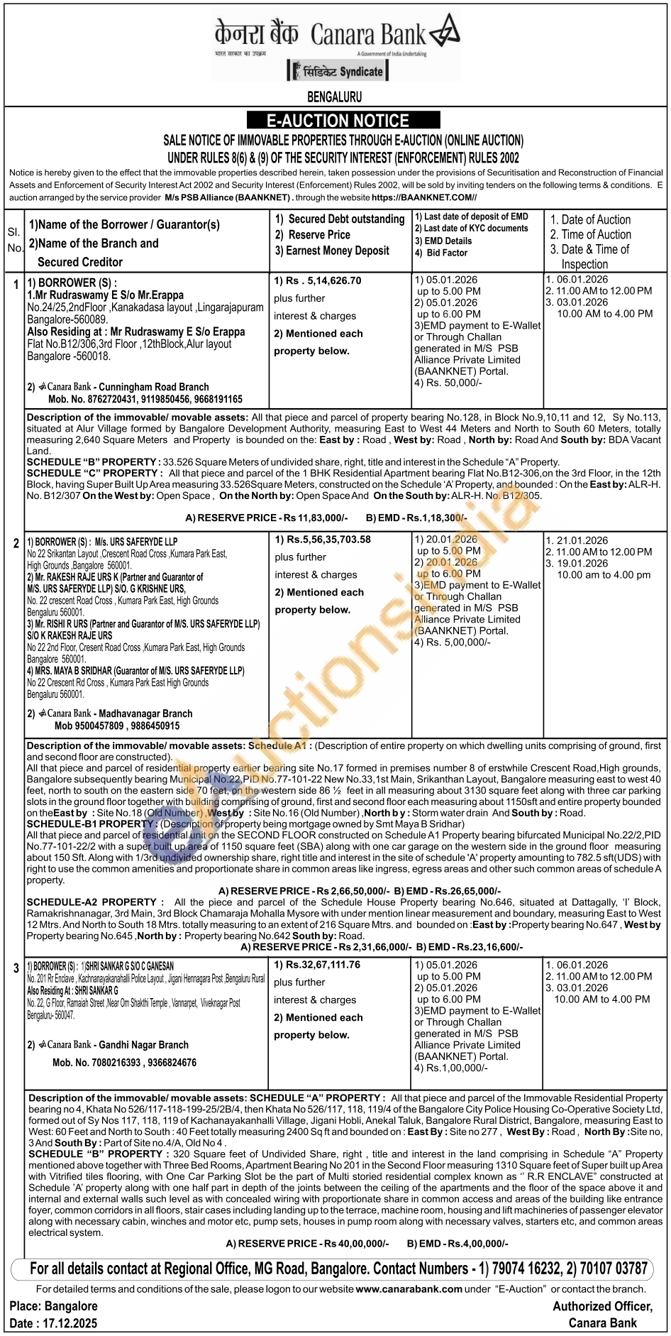 SCHEDULE-A2 PROPERTY: All the piece and parcel of the Schedule House Property bearing No.646, situated at Dattagally, 'I' Block, Ramakrishnanagar, 3rd Main, 3rd Block Chamaraja Mohalla Mysore with under mention linear measurement and boundary, measuring East to West 12 Mtrs. And North to South 18 Mtrs. totally measuring to an extent of 216 Square Mtrs. and bounded on : East by: Property bearing No.647, West by Property bearing No.645, North by: Property bearing No.642 South by: Road