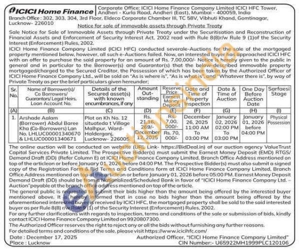Plot on Kh No. 12 situateda t Village Malhpur, Ward-Halderganj. Lucknow-226005