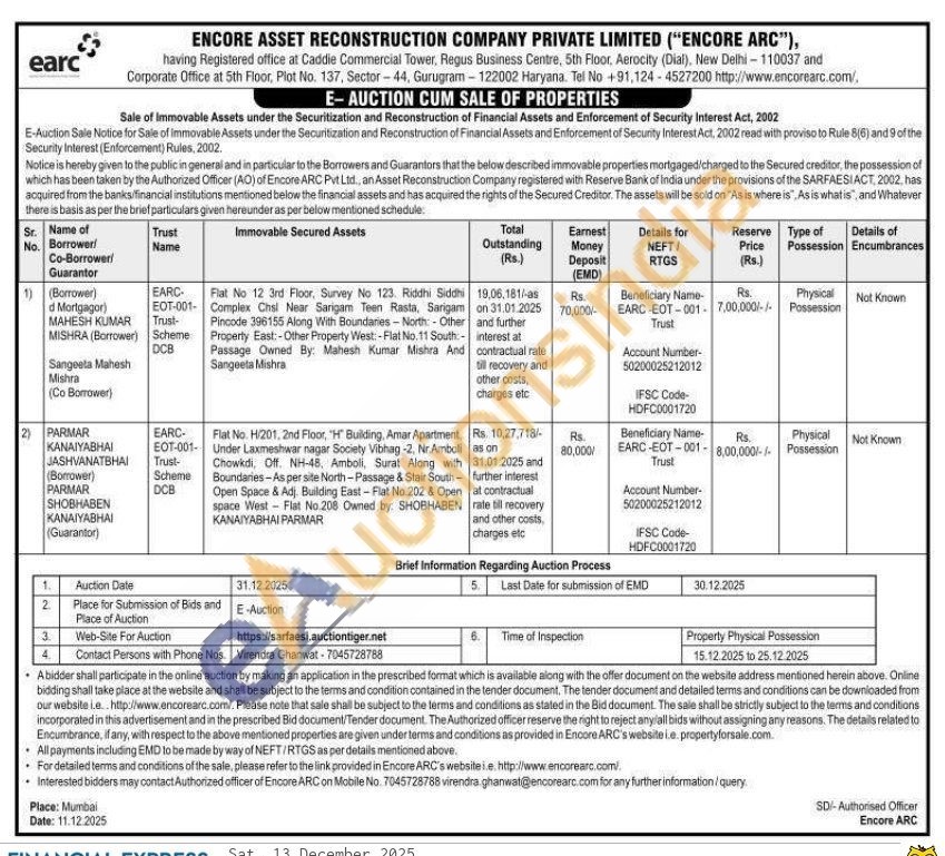 Flat No 12 3rd Floor, Survey No 123. Riddhi Siddhi Complex Chal Near Sarigam Teen Rasta, Sarigam Pincode 396155 Along With Boundaries-North: Other Property East:-Other Property West-Flat No. 11 South: Passage Owned By: Mahesh Kumar Mishra And Sangeeta Mishra