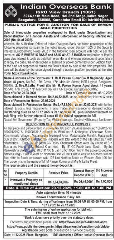 All that piece and parcel of land in survey No. 195 and 199. Assessment no 1009012790, 1009012792 & 11009013115 situated in Ward no.16 Kothapete, Shanawaz Street Kammapalle Village Madanapalle Municipal Area, Madanapalle Mandal, Madanpalle Sub District Chittoor Dist. Andhra Pradesh with total extent of the site 8892 sq ft with boundaries: East- By 3 ft width CC Road/ Shanawaz Street West -By House of S K Basha and House of Sri Rasool Khan North By 15 CC Road Lane South By the Ramkrishna Street Long: 78.5111730 & Lat: 13.5511000 Within the above boundaries admeasuring East to West on Northem Side 75 feet East to west on Southern side 95 feet North to South on eastem side 102 feet North to South on Westem Side 106 feel The property is in the name of Mr M Pawan Kumar and Mrs M Latha Preeti