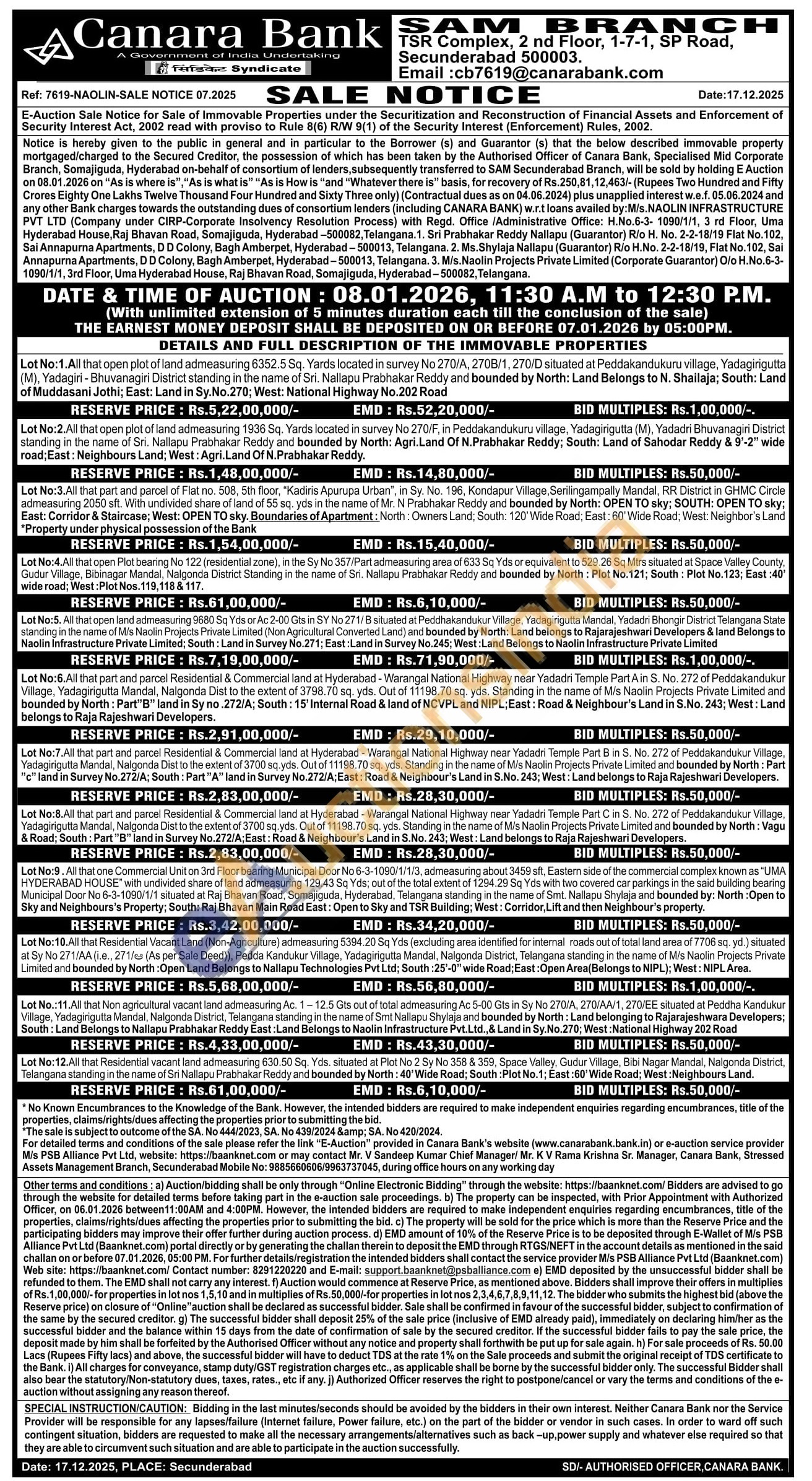 Lot No:5. All that open land admeasuring 9680 Sq Yds or Ac 2-00 Gts in SY No 271/B situated at Peddhakandukur Village, Yadagirigutta Mandal, Yadadri Bhongir District Telangana State standing in the name of M/s Naolin Projects Private Limited (Non Agricultural Converted Land) and bounded by North: Land belongs to Rajarajeshwari Developers & land Belongs to Naolin Infrastructure Private Limited; South: Land in Survey No.271; East: Land in Survey No.245; West: Land Belongs to Naolin Infrastructure Private Limited