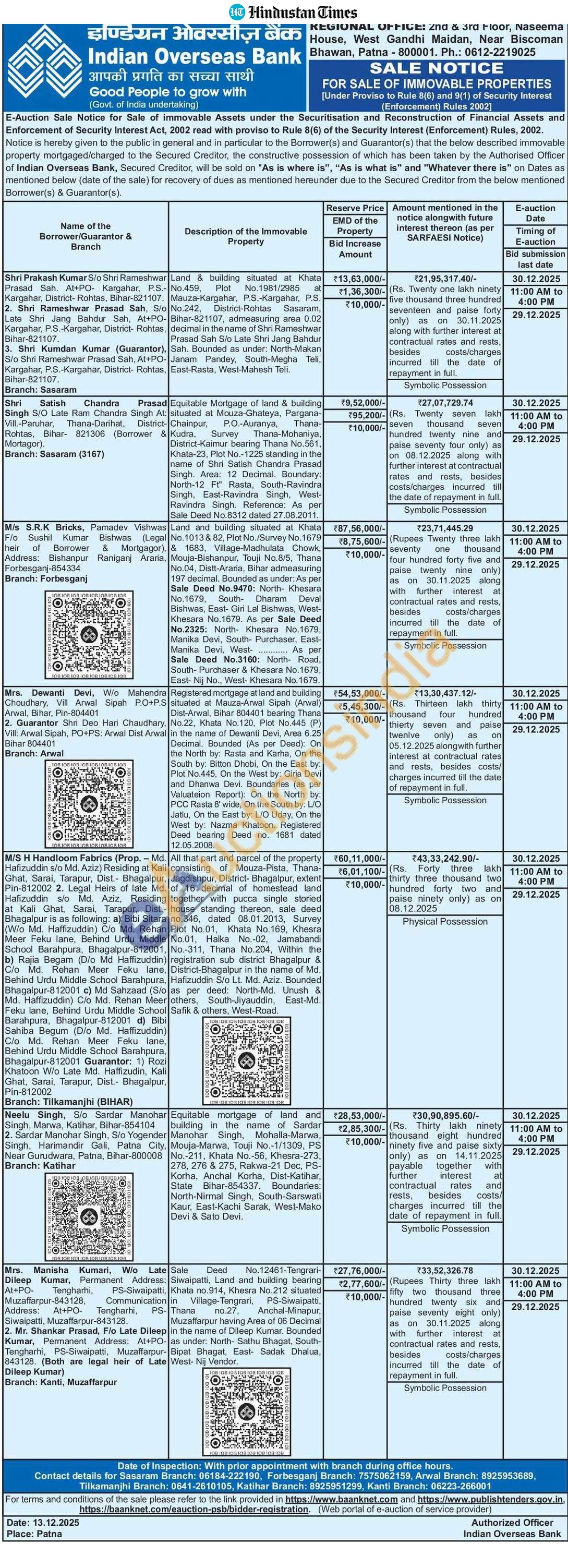 All that part and parcel of the property consisting of Mouza-Pista, Thana-Jagdishpur, District- Bhagalpur, extent of 16 decimal of homestead land together with pucca single storied house standing thereon, sale deed no.346, dated 08.01.2013, Survey Plot No.01, Khata No.169, Khesra No.01, Halka No.-02, Jamabandi No.-311, Thana No.204, Within the registration sub district Bhagalpur & District-Bhagalpur in the name of Md. Hafizuddin S/o Lt. Md. Aziz. Bounded as per deed: North-Md. Unush & others, South-Jiyauddin, East-Md. Safik & others, West-Road.