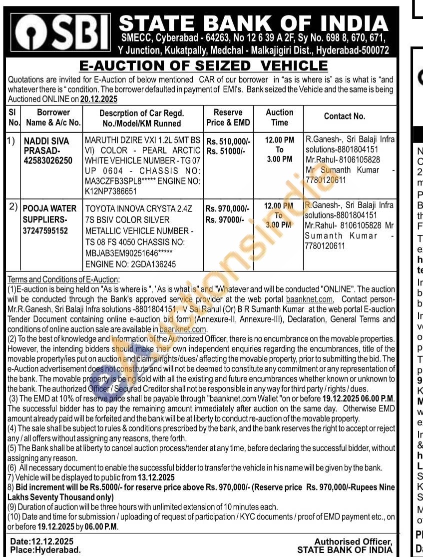 MARUTHI DZIRE VXI 1.2L 5MT BS VI) COLOR PEARL ARCTIC WHITE VEHICLE NUMBER-TG 07 UP 0604 CHASSIS NO: MA3CZFB3SPL8***** ENGINE NO: K12NP7386651