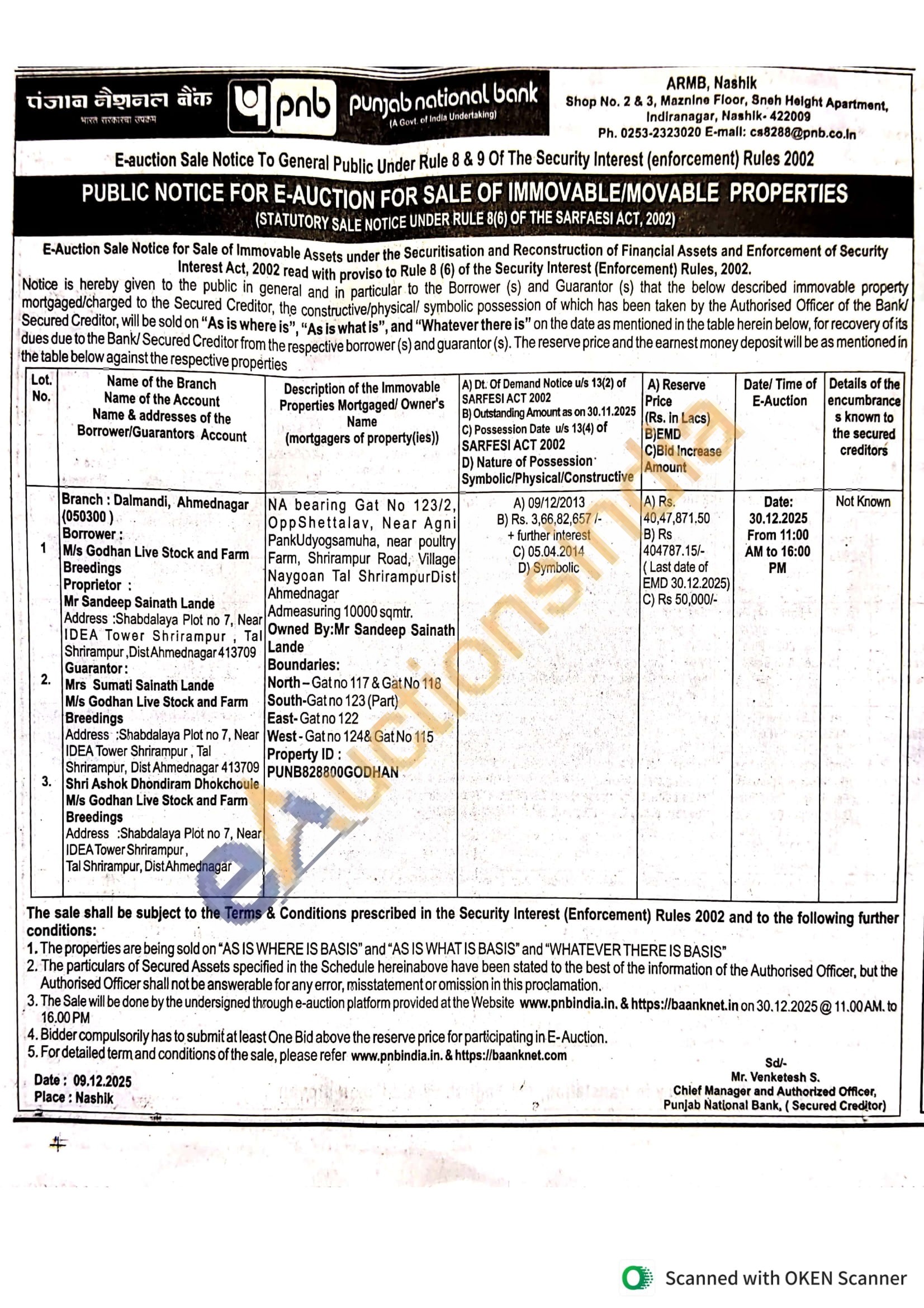 NA bearing Gat No 123/2, Farm, Shrirampur Road, Village OppShettalav, Near Agni PankUdyogsamuha, near poultry Naygoan Tal Shrirampur Dist Ahmednagar .Admeasuring 10000 Sq mtr