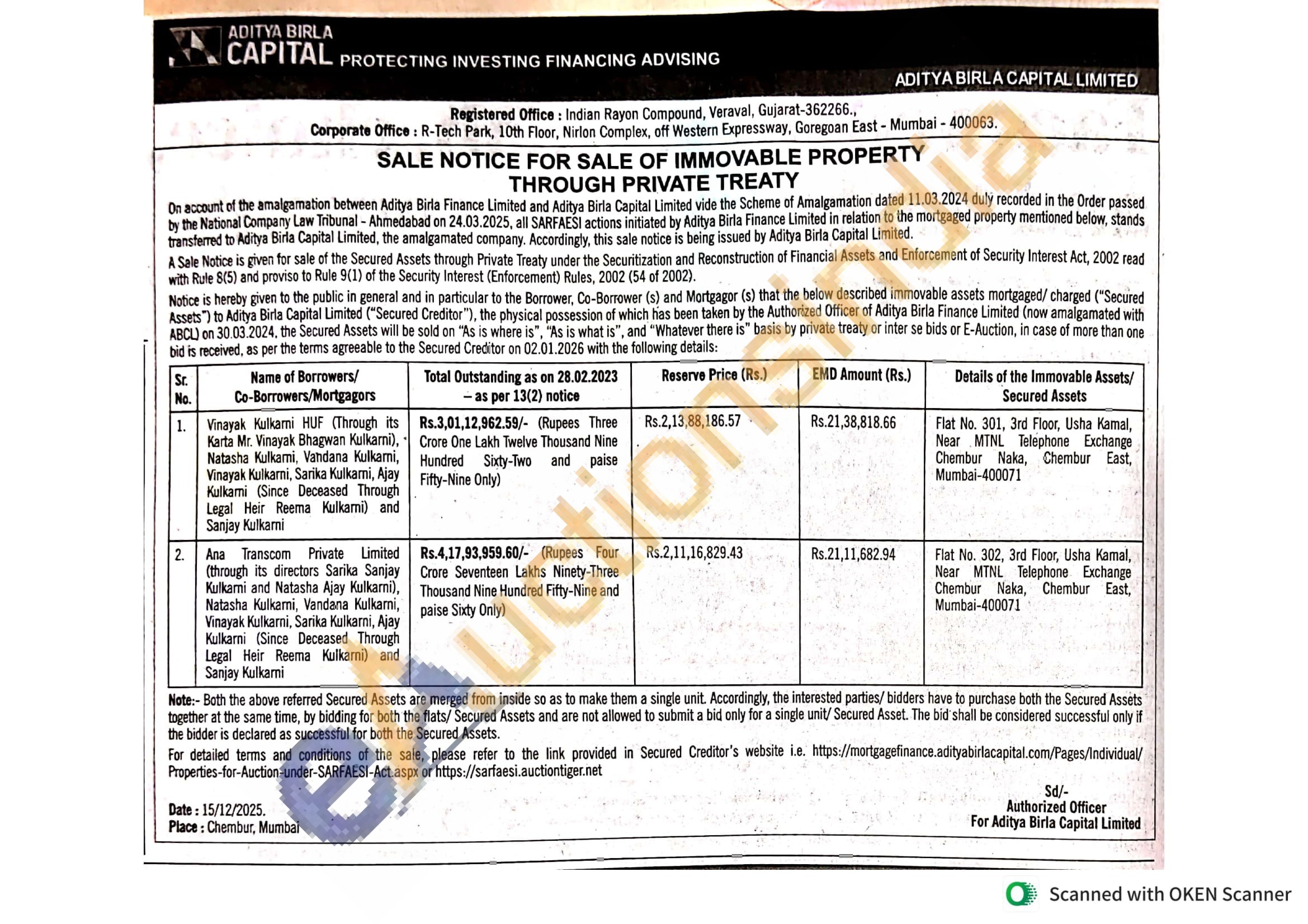 Flat No. 302, 3rd Floor, Usha Kamal, Near MTNL Telephone Exchange Chembur Naka, Chembur East, Mumbai-400071