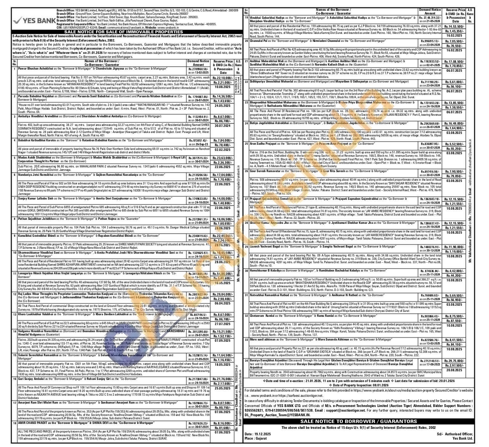 Contact No : Mr. Bhagirathsinh Rayjada on Mo. 8160322752 or Email: bhagirathsinh.rayjada@yesbank.in