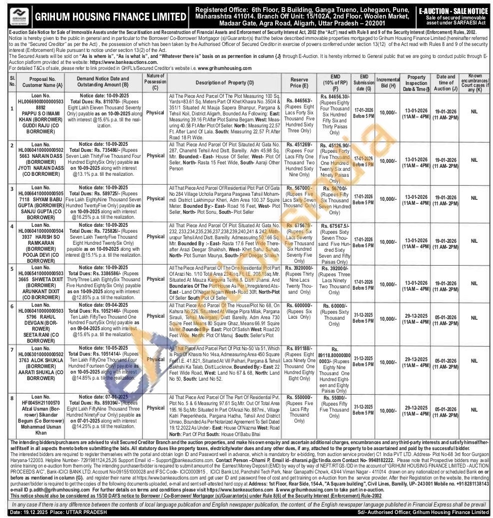 All That Piece And Parcel Part Of Plot No-50 Va 51, Which Is Part Of Khasra No 14sa, Admeasuring Area 450 Square Feet IE. 41.821, Situated At Vill Palhari, Pargana & Tehsil L Bakhshi Ka Talab, Distt Lucknow, Bounded By:- East: 22 Feet Wide Road, West: Land No 67 & 68, North: Land No 50, South: Land No 52.
