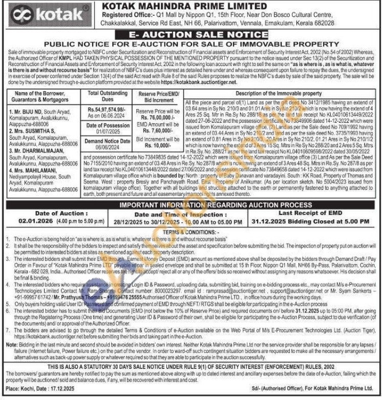Mr. Syam Sankerts -+91-9995761742 / Mr. Prathyush Thomas-+91 9947625555 Authorised Officer