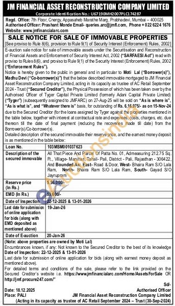 All That Piece And Parcel Of Patta No. 01, Admeasuring 212.75 Sq. R., Village- Manihari, Tahsil-Pali, District - Pali, Rajasthan-306422, And Bounded As: East-Road & Door, West-Bhaira Ram S/O Lala Ram, North Bhaira Ram S/O Lala Ram, South Gayad S/O Jayrupram