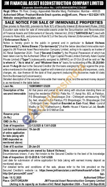 All that piece and parcel of land along with structure standing there an being the residential Plot No. Patta No. 17, Aaraji No. 803, at Palotiya P.S Bhopalsagar Th. Bhopalsagar, Dist-Chittorgarh admeasuring 1748 Sq. feet, situated in the Palotiya, P.S Bhopalsagar. Th. Bhopalsagar. Dist -Chittorgarh State - Rajasthan Bounded as East-Road, West-Land of Madhu lal SIO Radheshyam j, North-House if Kasna Lal Jat, South-Plot of Gopi das S/O Mohan Das