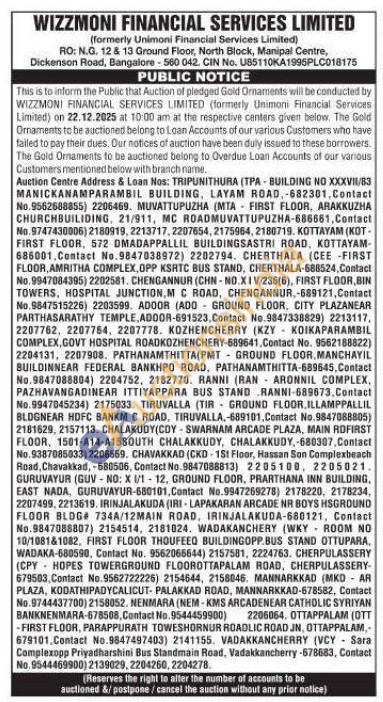 Wizzmoni Financial Services Limited Gold Auctions Auction in Ernakulam