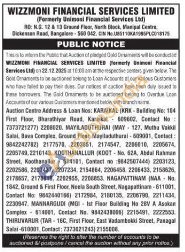 Wizzmoni Financial Services Limited Gold Auctions Auction in Nagapattinam